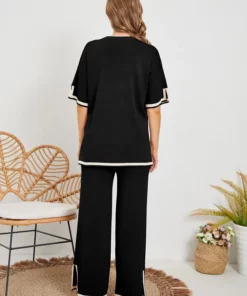 It features a crew neck, long/short sleeve, side split hem, and wide leg pants with elastic waistband, loose fit that fits any body size.