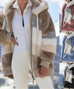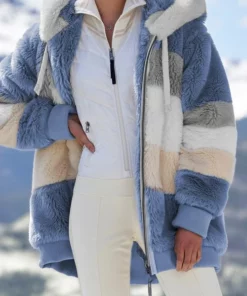 Coat Warm Hooded Zip Up Fuzzy Winter Jacket with Pockets