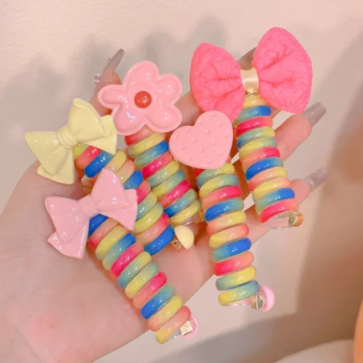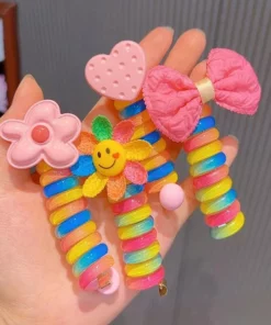 Try our colorful phone cord hair ties for your daughter! Cute cartoon and different flower patterns, small and lightweight, satisfy the perfect match of girls’ various clothes.