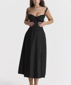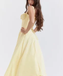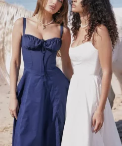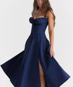 You’ll feel ultra feminine in our ‘Carmen’ dress that’s the perfect match for spring and summer garden parties. It’s cut from polyester in a gorgeous blue print hue and has a corseted bodice to cinch the fit with a beautiful lace up back. The gathered bust has a drawstring tie and the side split adds a little sexiness to reveal a flash of leg.