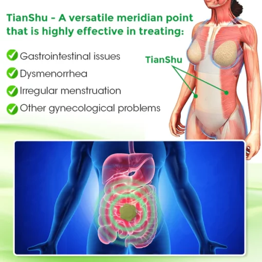 - Apply the patch on the “TianShu” point – located 2 inches to the left and right of the belly button.