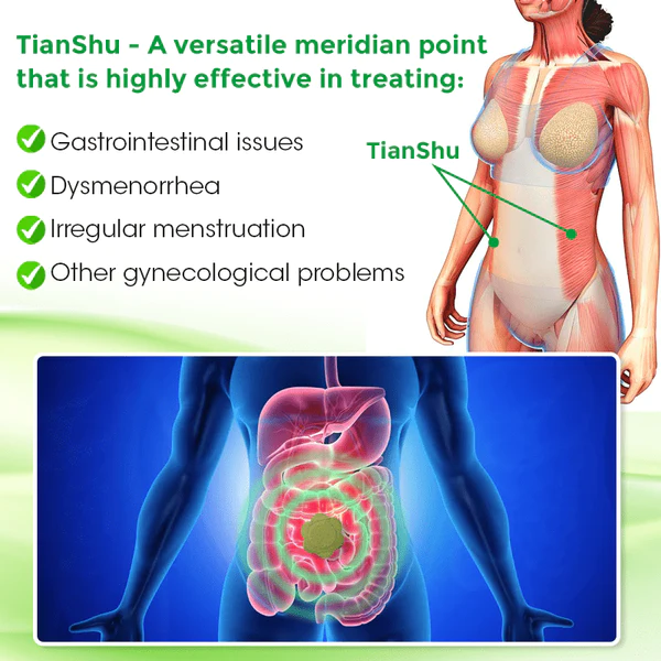 ConstiGuard™ is a multi-purpose solution that addresses constipation, inflammation, and indigestion. Its powerful blend of natural components, combined with gentle heat (38℃-40℃), accelerates delivery to the digestive system, promotes peristalsis, and regulates overall digestive functions. By targeting the “TianShu” point, ConstiGuard™ ensures long-term healthy bowel function and enhances digestive health.