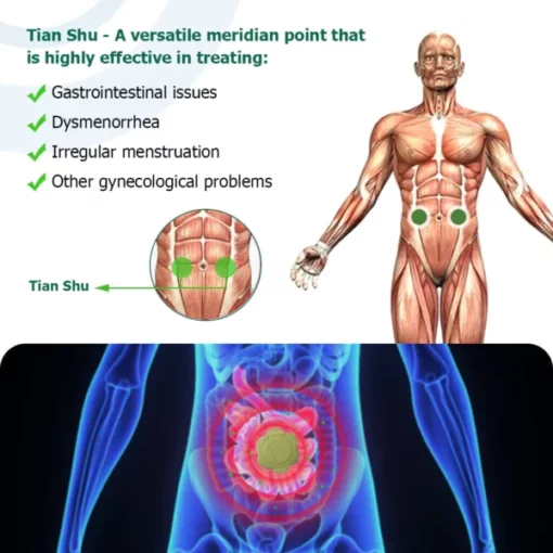 - Apply the patch on the “Tian Shu” point – located 2 inches to the left and right of the belly button.