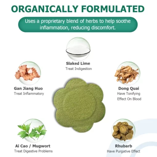 ConstiPatch™ offers a fast and effective solution for those suffering from constipation. Our unique blend of Chinese herbs, including Ai Cao, Rhubarb, Slaked Lime, Dong Quai, and Gan Jiang Huo, are carefully selected to stimulate the meridian point “Tian Shu” and promote healthy bowel function. Unlike harsh laxatives that can cause discomfort and cramping, ConstiPatch™ is a natural and gentle solution that provides relief within just 30 minutes of use.