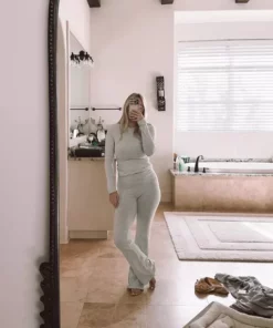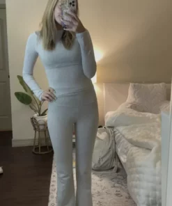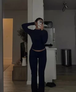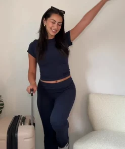 The comfiest lounge staple set. A fitted round neck T-shirt paired with stretchy casual pants, which is super flattering!