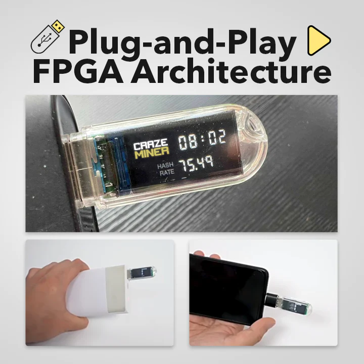 - Built on a Field-Programmable Gate Array (FPGA) architecture, this miner boasts a plug-and-play design, allowing users to seamlessly configure and adapt their mining strategies without the need for complex hardware adjustments.