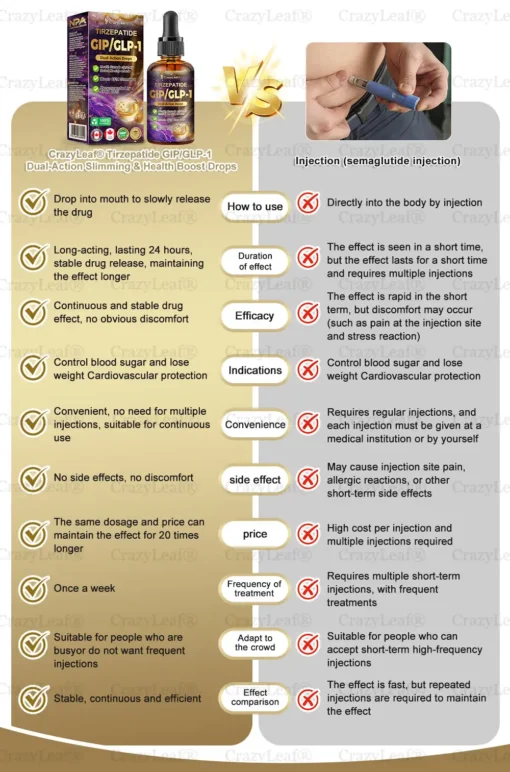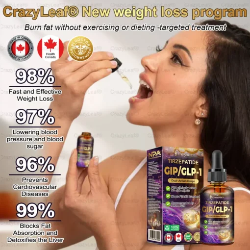CrazyLeaf® Tirzepatide GIP/GLP-1 Dual-Action Slimming & Health Boost Drops is a revolutionary, science-backed oral liquid supplement designed to: