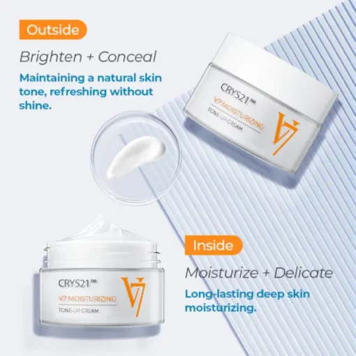 CRYS21™ V7 Moisturizing Tone-up Cream is a game-changer! Its creamy texture blends seamlessly onto the skin, providing a natural and radiant look. The moisturizing formula keeps my skin hydrated all day, while the tone-up effect evens out my complexion for a flawless finish. Highly recommended!