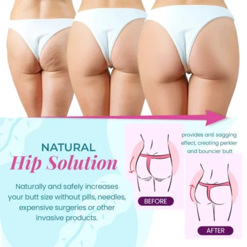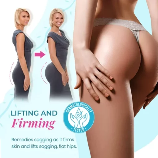 Shea butter is rich in fatty acids and vitamins, making it a natural moisturizer that can improve skin elasticity and firmness. By nourishing and firming the skin, shea butter can contribute to a more lifted and toned appearance in the hips and buttocks.