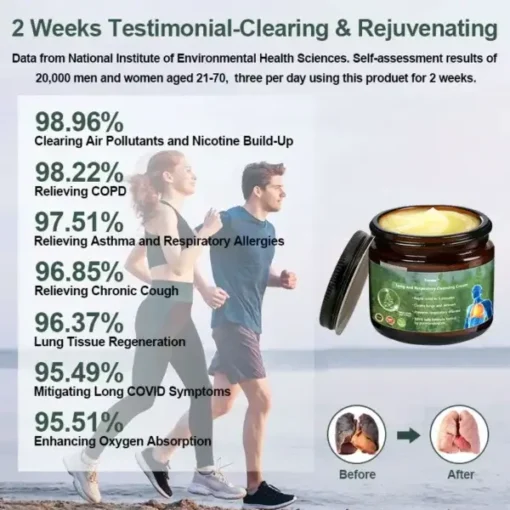 - In a 28-day clinical trial involving 2,572 people around the world, the product was proven to have a very powerful cleaning and regeneration effect on the lungs of people who smoked or inhaled dust for a long time.ย The subjectsโ cough, shortness of breath, phlegm, and Symptoms such as chest pain and dyspnea have been greatly improved.