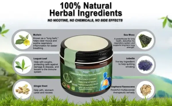 Our Cvreozโข ๐ ๐๐น๐น๐ฒ๐ถ๐ป ๐๐น๐ฒ๐ฎ๐ฟ ๐๐๐ป๐ด ๐ฅ๐ฒ๐ฝ๐ฎ๐ถ๐ฟ ๐๐ฟ๐ฒ๐ฎ๐บย combines six powerful natural ingredients that work together to provide comprehensive lung support and detoxification, making it particularly suitable for those facing respiratory problems or wishing to quit smoking.
