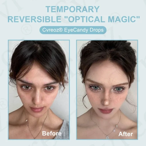 Tired of dry, irritated eyes from color contacts? 👁️ Cvreoz® EyeCandy Drops offer the perfect solution! Unlike traditional lenses that cause discomfort, redness, and infection risks, our innovative drops safely enhance your natural eye color in just 2 hours – with no dryness, no fake-looking edges, and no daily hassle. The vegan formula lasts 5-7 days, giving you gorgeous, natural-looking color without the dangers of contacts. Plus, you’ll save hundreds compared to buying multiple pairs of lenses. Ditch the discomfort and embrace effortless beauty – your eyes will thank you! ✨