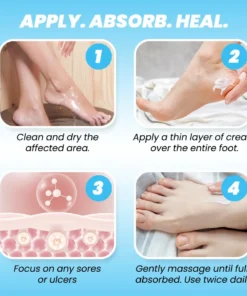 - Apply a thin layer of cream over the entire foot, focusing on any sores or ulcers.