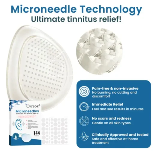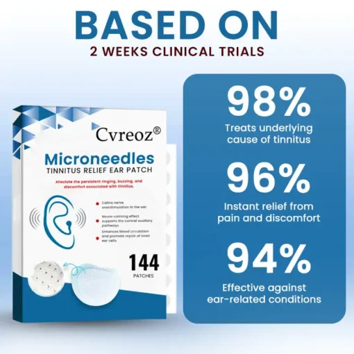 In a controlled clinical study involving 312 participants suffering from chronic tinnitus, 97% reported a noticeable decrease in ringing intensity after just 14 days of using the Cvreoz® Microneedle Ear Patch. Participants who continued for the full 30-day cycle experienced significant reductions in frequency and duration of symptoms, with 94% reporting they could sleep better and concentrate more clearly. No adverse effects were recorded, and over 96% expressed satisfaction with the non-invasive delivery system and ease of use.