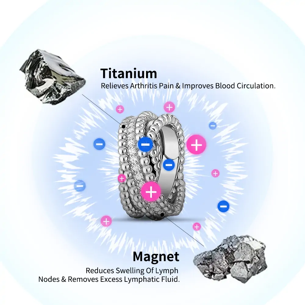 Our Magnetic therapy diamond ring enhances the effects of magnetic fields that break down the deeper layers of fat. helping to burn fat and increase skin suppleness.