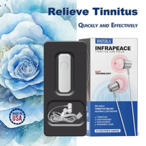 Low-Level Laser Therapy(LLLT) has been shown to have positive effects on wound healing, tissues and nerves repair, musculoskeletal complications and pain control. Numerous Scientific studies showed positive results in treating tinnitus with LLLT. The inspiration for all our hearing solutions comes from how we hear and interact naturally with the world around us. That is why all InfraPeace Tinnitus Ear Piece is built on our unique hearing philosophy, with the Red Light Penetrating to Inner Ear, stimulating the regeneration and cure of Damaged Nerves and Cells in the inner ear.