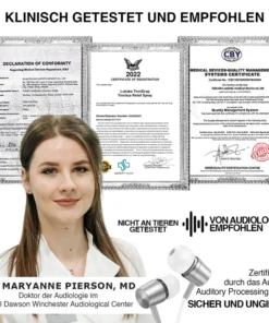 “DAFEILA™ Infrapeace ist gemacht, um Tinnitus an seiner Wurzel zu bekämpfen. Die im Labor getestete Low-Level-Lasertherapie repariert beschädigte Gewebe im Innenohr und verhindert, dass die beschädigten Gewebe Phantom-Signale an das Gehirn senden”, sagt Dr. Anastasia Sanford, Au.D., eine Audiologin am Royal Dawson Winchester Audiological Center in Massachusetts, eine von Tausenden Audiologen, die InfraPeace für eine der effektivsten rezeptfreien Lösungen zur Linderung von Tinnitus halten.