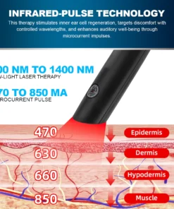 - Low-Level Laser Therapy (LLLT): Upon the application of infrared light to the areas around the ears, it has the ability to deeply penetrate the tissues, where it can specifically target pain receptors. This interaction with pain receptors is thought to diminish pain signals, potentially alleviating the physical discomfort linked to tinnitus.