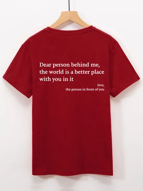 By wearing the “Dear Person Behind Me” T-Shirt, you’ll be spreading positivity & kindness wherever you go.