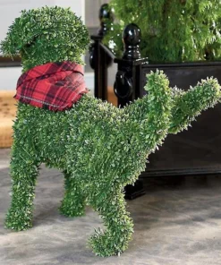 Let’s face it, the tacky lawn ornaments, annoying garden gnomes, unfashionable concrete geese, and utterly boring traditional topiaries just aren’t getting the conversation started around your home anymore, but this cool Faux Boxwood Garden Dog should ensure at least a few double takes.