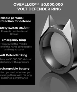 Ein unverzichtbares Elektrowerkzeug zur Selbstverteidigung – dieser Ring hat eine stärkere Schlagkraft als die meisten größeren Elektroschocker. Es kann bis zu 50.000.000 Volt Strom freisetzen. Das Berühren eines Angreifers für weniger als 1 Sekunde führt zu Muskelkontraktionen und hat eine abstoßende Wirkung. Für mehr Sicherheit können Sie mehrere dieser Ringe tragen. Die perfekte Möglichkeit, Ihrem Leben eine zusätzliche Schutzschicht hinzuzufügen, ohne auf Stil zu verzichten.