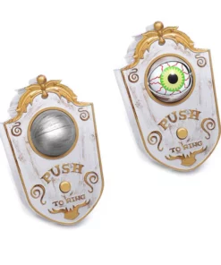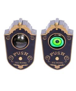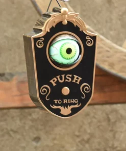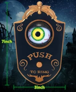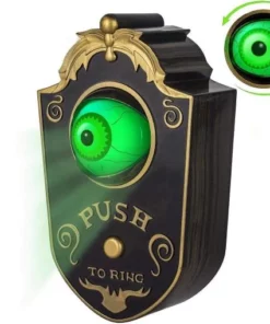 Press the button on the doorbell, the eye opens with green light and turns around, making scary sounds. This scary awesome doorbell will be a horror this Halloween!