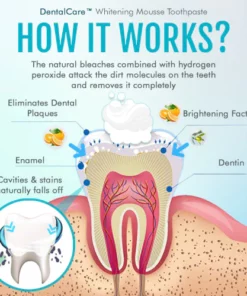 DentalCare™ Whitening Mousse Toothpaste breaks stains into molecular-level pieces, which makes the color less concentrated and the teeth brighter.