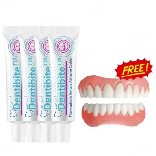For a limited time, purchase 4 packs of Dentibite™ and receive a FREE Brace to enhance your denture support! Designed with customizable 100% safe silicone material, it offers immediate relief from soreness and ensures a lasting, secure fit. Safe and non-toxic, this set guarantees denture stability, allowing you to engage confidently in daily activities.