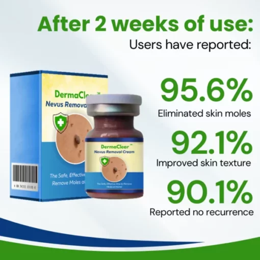 Clinical testing has shown that the cream is effective in reducing nevus size and improving nevus color. A total of 50 participants with unwanted nevi were enrolled in the study. Participants applied DermaClear™ Nevus Removal Cream twice a day to the affected area for a period of 15 days. Changes in nevus size, color, and texture were assessed at baseline, day 7, and day 15 using digital photography and clinical examination. On day 15, 92% of participants reported a reduction in nevus color, with an average improvement of 37%. No adverse effects or scarring were reported during the study period.