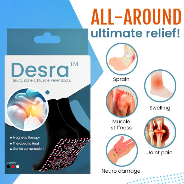 Are you tired of being held back by injuries, pain, and discomfort? Say hello to a new era of relief with Desra™ Neuro, Bone & Muscle Relief Socks! We’re thrilled to introduce you to the ultimate solution for those seeking effective, non-invasive pain relief that fits seamlessly into your daily routine.