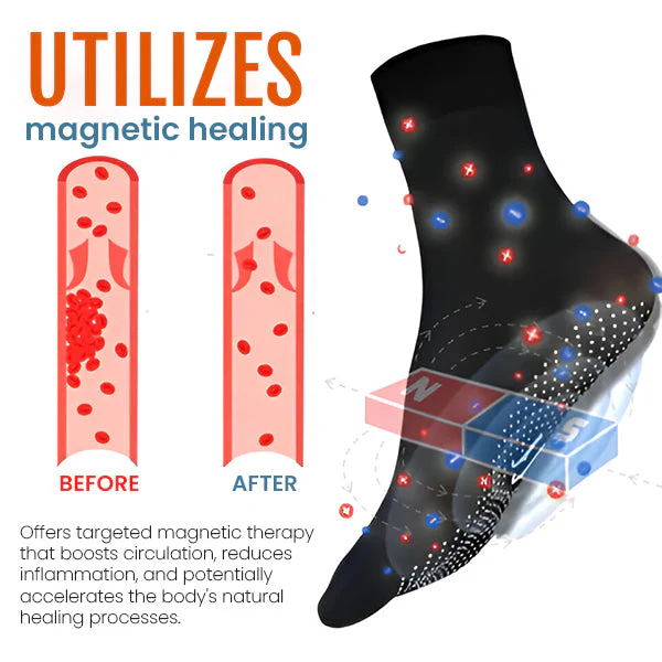 Are you ready to discover the secret behind our socks’ remarkable effectiveness? It’s all about the power of dual therapy – combining the soothing warmth of heat therapy with the targeted precision of magnetic therapy. This dynamic duo works tirelessly to combat pain and inflammation, promoting enhanced blood circulation and revitalizing your body from the ground up.