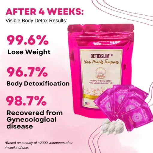 WhenDetoxSlim™ Yoni Pearls Tampons are injected into Yoni, it assists the kidneys to detoxify and absorb toxins from your body, which in turn may lead to weight loss and make you healthier.