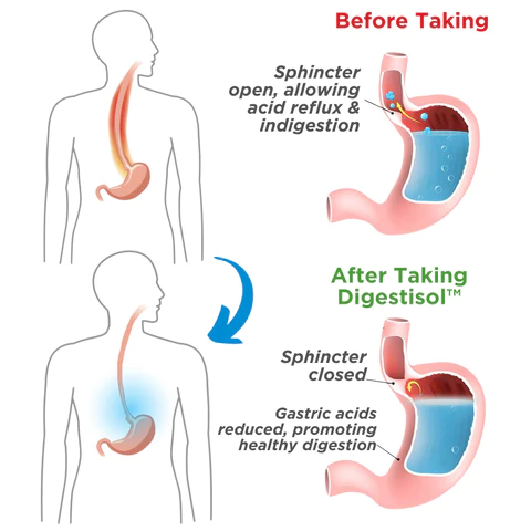 Additionally, Digestisol™ contain ingredients that help to form a protective barrier along the esophagus and stomach lining, shielding them from further irritation caused by gastric acid. This protective action helps to promote healing and soothe any inflammation or irritation present.