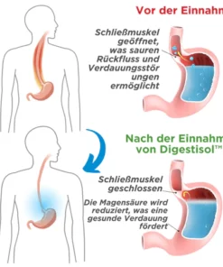 Darüber hinaus enthält Digestisol™ Inhaltsstoffe, die dazu beitragen, eine Schutzbarriere entlang der Speiseröhre und der Magenschleimhaut zu bilden und sie vor weiteren Reizungen durch Magensäure zu schützen. Diese schützende Wirkung hilft, die Heilung zu fördern und vorhandene Entzündungen oder Reizungen zu lindern.