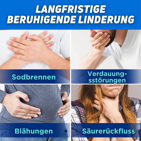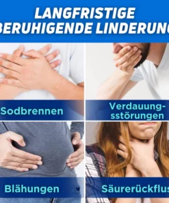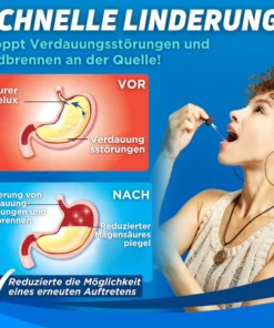 - Schnelle Linderung von Verdauungsstörungen wie Sodbrennen, sauren Verdauungsstörungen, Blähungen und Magenbeschwerden.
