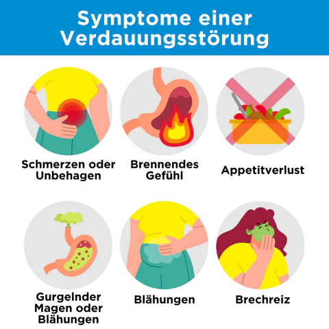 Verdauungsstörungen können sich durch eine Vielzahl von Symptomen äußern, die oft zu Beschwerden und Störungen des täglichen Lebens führen. Zu diesen Symptomen können Blähungen, Blähungen, Aufstoßen, Übelkeit und ein brennendes Gefühl im Oberbauch oder in der Brust gehören, das allgemein als Sodbrennen bezeichnet wird.