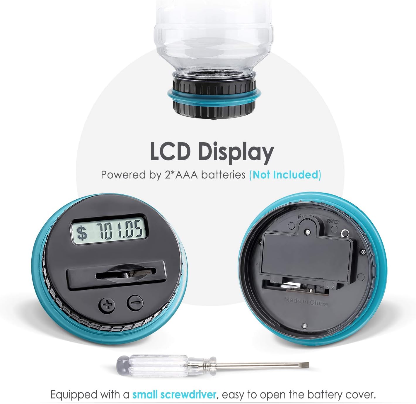 Equipped with advanced coin identification technology, the digital coin counter distinguishes coins of all sizes with great accuracy. Plus, when you unscrew the lid, you can manually adjust the displayed amount using the + and – buttons — making saving fun and interactive for kids.