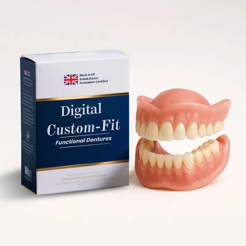 Our Digital Custom-Fit Functional Dentures are BDA & FDA certified, developed with input from professional dentists, and manufactured in the United Kingdom using premium medical-grade materials. We do not authorize sales through third-party resellers or discount shops.