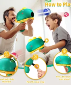 - Easy to Use: No assembly required, just drop the sticky ball into the shot, pull the dinosaur’s tail, aim and press the trigger to fire. Children can play safely indoors or outdoors.