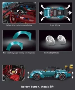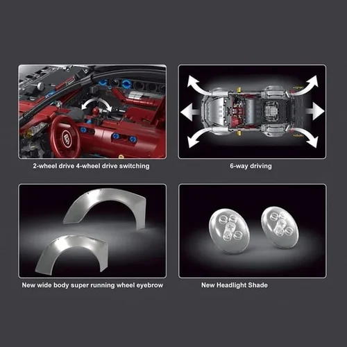 DIY dynamic version 1:8 Scale Super Car Building Kit with Electroplated Metal Parts Creative Building Toys for Adults (3389 Pieces)
