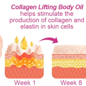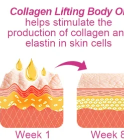 The Dobshow™ 10x Collagen Body Oil is a product that helps to reduce the visible signs of aging and wrinkles, providing a revitalized appearance to the skin in just 3-5 weeks. This oil includes scientifically tested components that can effectively combat wrinkles, such as Collagen, Hyaluronic Acid, Phenol Esters, and Vitamin E.