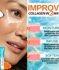 A key component of this powerful serum is the Innovative eye-roller massager. This eye-roller is designed not only to assist in the even application of the serum but also to provide a soothing massage that significantly enhances the product’s effectiveness.