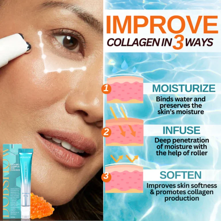 Dobshow Caviar B-Complex Eye Essence is a highly effective solution for combating signs of aging in the delicate skin around the eyes. By promoting collagen synthesis and accelerating the skin’s natural cell turnover, it results in noticeably firmer skin and a significant reduction in fine lines, wrinkles, dullness, dryness, and enlarged pores. With regular use, the skin appears more rejuvenated, vibrant, and refreshed, restoring a youthful glow that visibly defies age.
