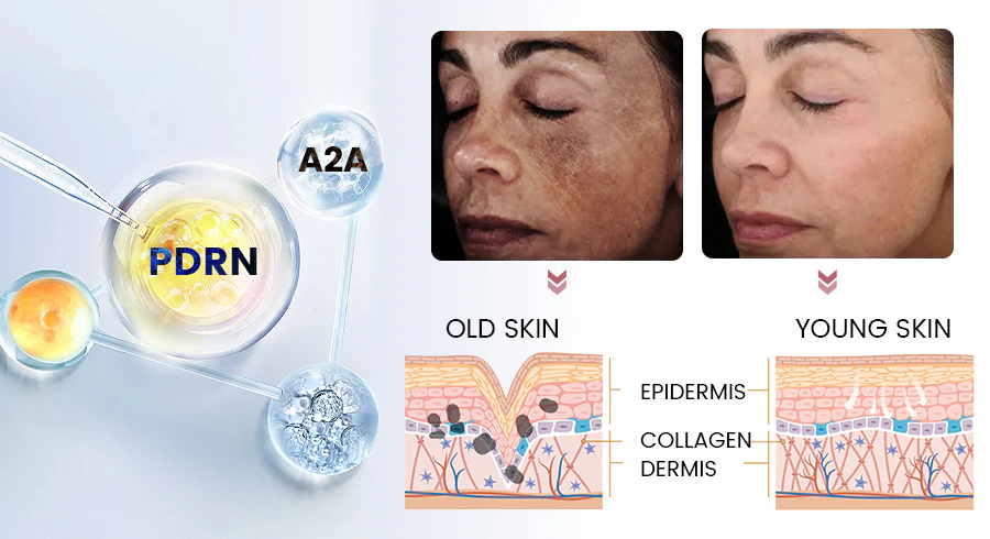 ✔️ Unique recombinant salmon PDRN and RGD peptide ingredients, deep into the skin layer, promote collagen synthesis