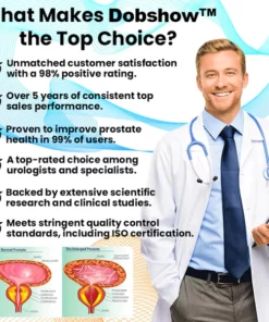 Dobshow™ herbal capsules, developed by Dr. Jonathan Davidson’s expert team in the USA, have undergone extensive testing and demonstrated a remarkable 99% efficacy rate for promoting optimal prostate health.