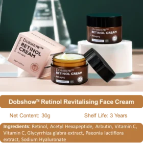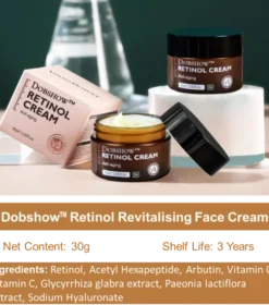 Dobshow™ Retinol Revitalising Face Cream, fights aging effectively. It accelerates collagen regeneration, evens out and brightens skin tone, lifts and firms skin, refines skin, diminishes wrinkles, shrinks pores, controls oil, and improves the skin’s ability to withstand age and external environmental changes!