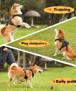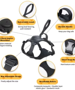 Adjustable Breathable Harness: Our adjustable dog harness has 4 easily adjustable elastic belts around the body. Made of nylon, composite waterproof fabric, double-layer elastic bonding, and sandwich mesh to prevent damaging to dog’s skin. Easily adjustable, create a perfect fit for the growing dogs. 2 sturdy metal belt loops on the chest and back to prevent the tearing of the harness. The leash can also be installed when necessary.