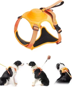 Innovative design: Dog harness and retractable leash All-in-One.Built-in safety system in this harness will automodcally stop your dog from running to the crowd powerfully and suddenly when you walk your dog.The leash will automatically retract into the module when your loose it gently.Free your hands and let your dog enjoy the freedom.