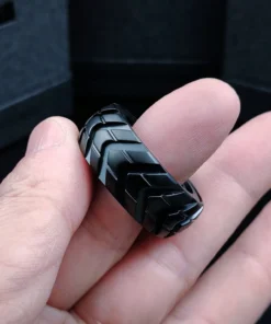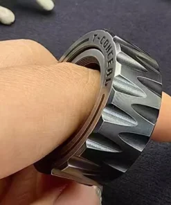 The outer ring takes its inspiration from the rugged appearance of a motorcycle tire, complete with anti-slip arrow patterns on the surface. This design not only adds a unique and stylish touch but also provides an excellent grip for effortless spinning.