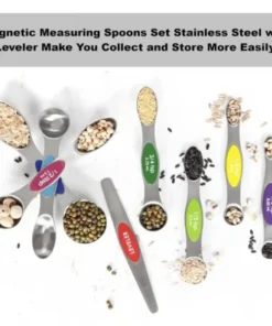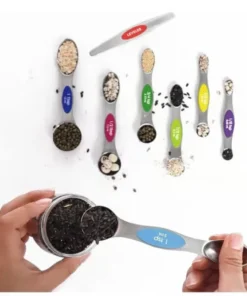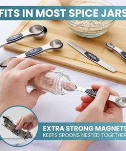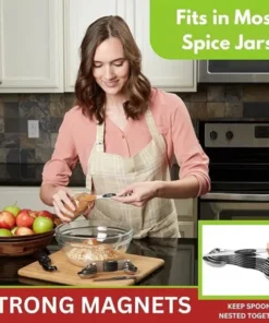 The magnetic measuring spoons nest together neatly for compact storage. Strong magnets hold the spoons securely in place, preventing them from getting lost while keeping your kitchen organized.